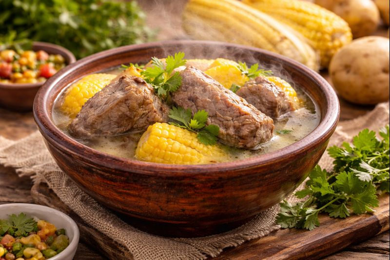 El caldo de costilla es uno de esos desayunos que inmediatamente te conecta con la vida del altiplano colombiano. Preparado lentamente con costillas de res, papas criollas, cebolla, ajo y cilantro, este caldo es reconfortante, sabroso y lleno de energía para comenzar el día.